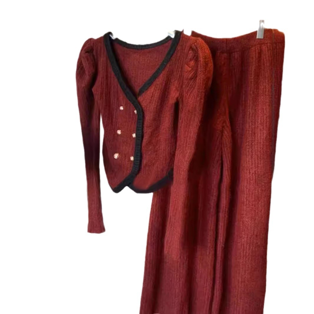 Xiaoxiang style knitted suit women's spring and autumn clothes with a set of fashionable casual wide leg pants popular two-piece suit this year