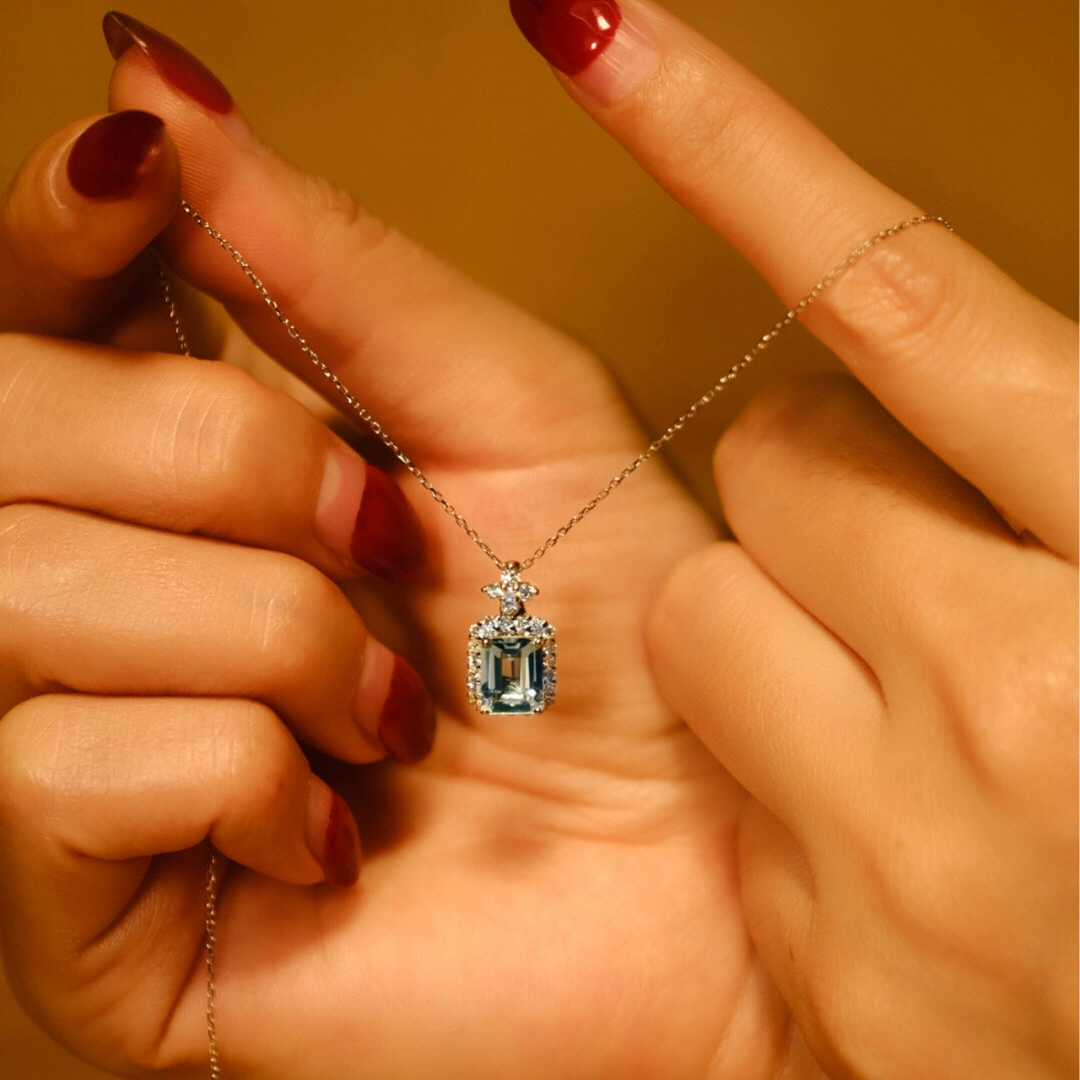 | nameOriginal | Xiaoxiang style micro-embellished diamond clavicle chain aquamarine for women |