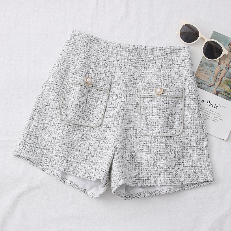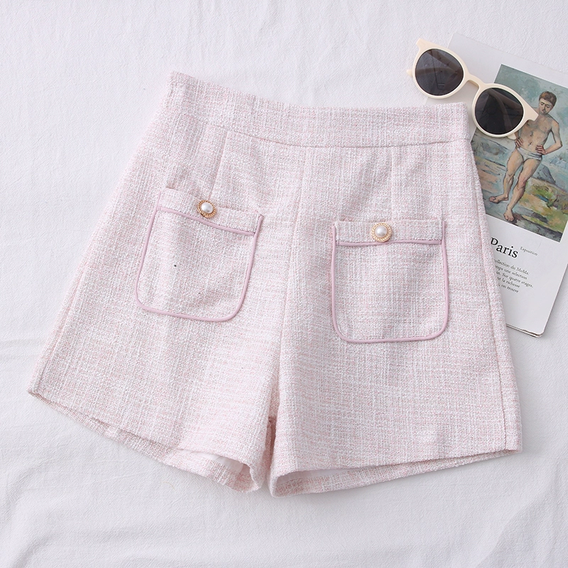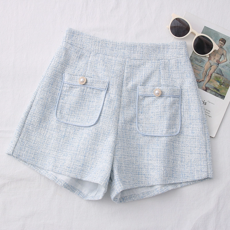 | nameOriginal | Xiaoxiang style tweed high waist double pocket design shorts |