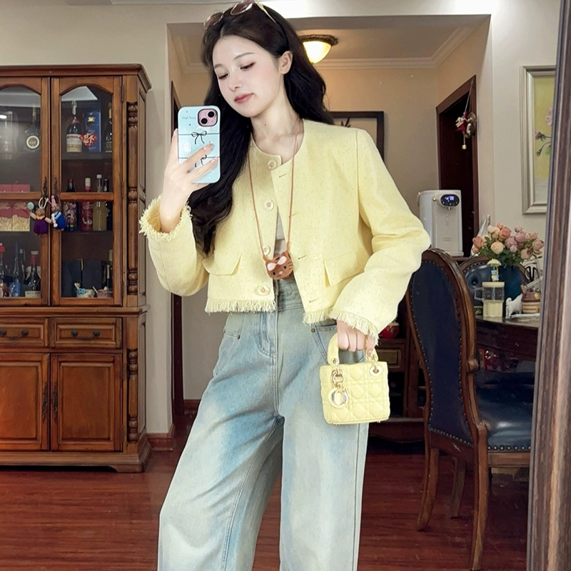 Xiaoxiangfeng autumn and winter fringed raw edge exquisite short coat