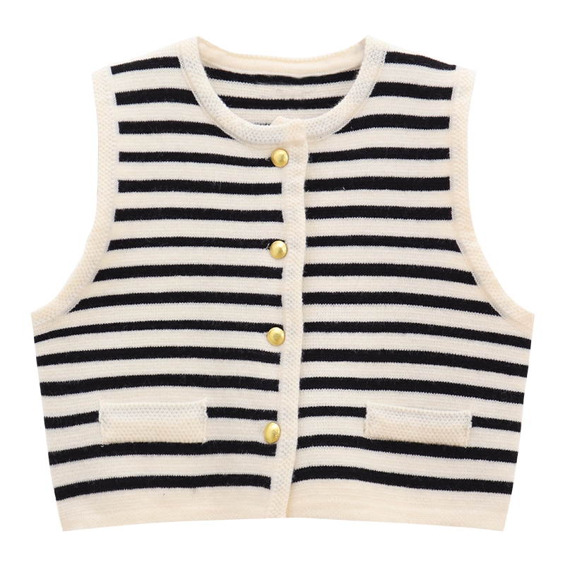 | nameOriginal | Xiaoxiangfeng black and white striped loose short knitted vest |