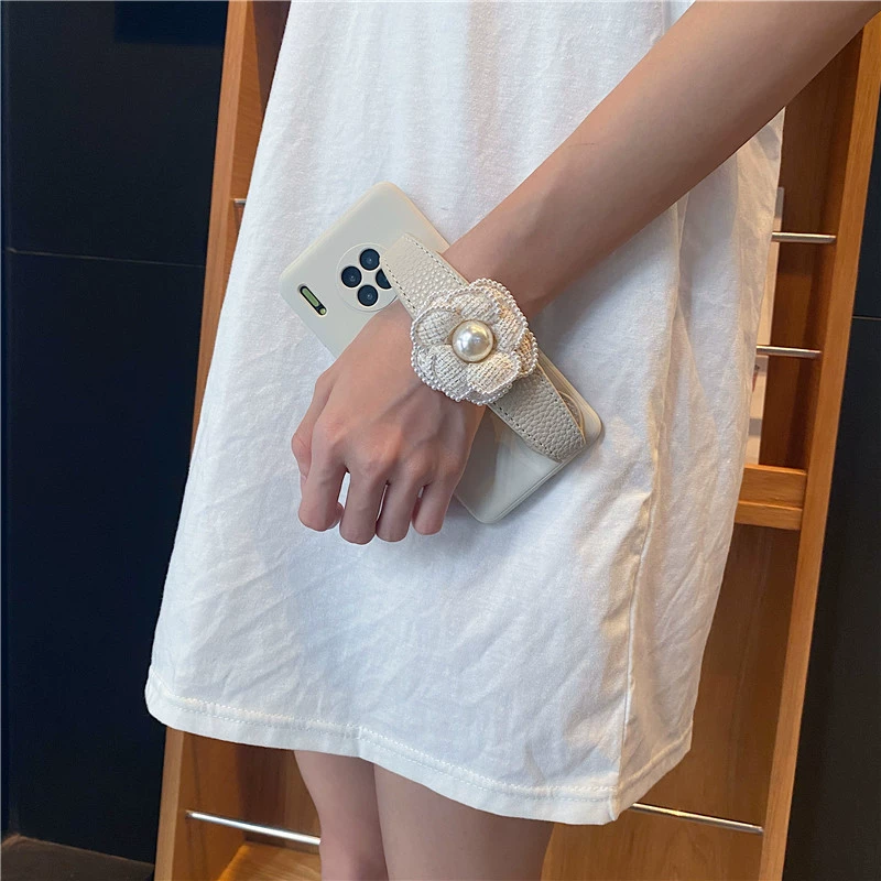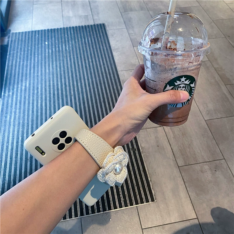 Xiaoxiangfeng camellia leather wristband 5G suitable for Huawei mate60 mobile phone case 50 anti-fall mate40/30Epro protective cover 40RS Porsche 20x soft shell 10 women + pearl flower 9 trend