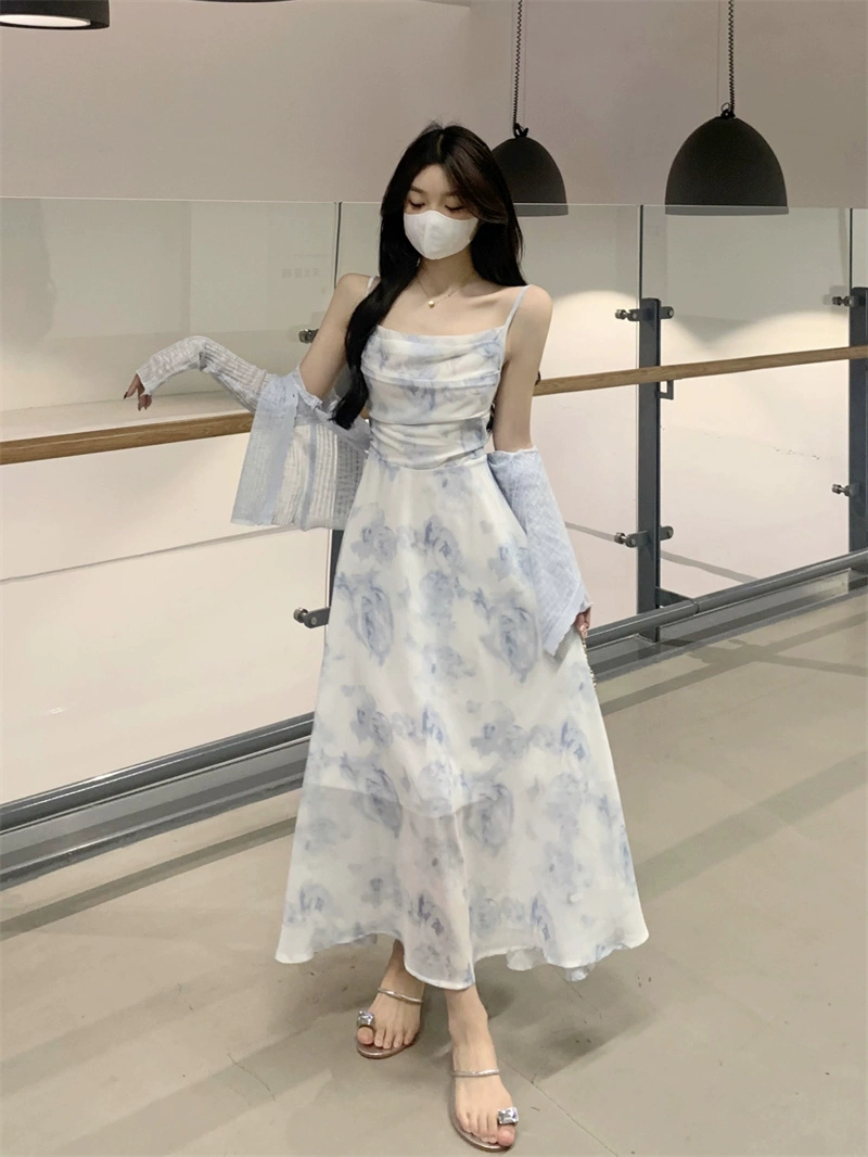 | nameOriginal | Xiaoxiangfeng chiffon knitted cardigan jacket with floral suspenders |