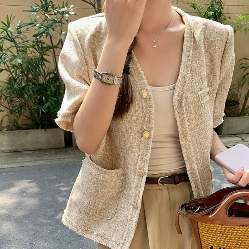 Little incense breeze jacket ladies pads shoulder cardigan shirt short sleeves