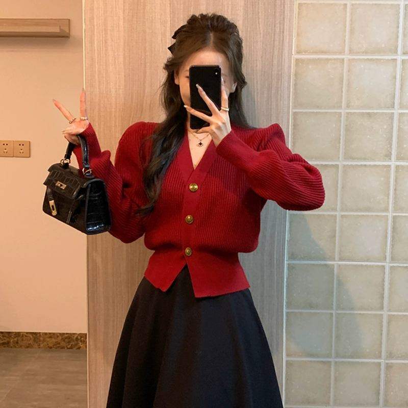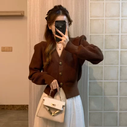 | nameOriginal | Xiaoxiangfeng coffee color cardigan with waist and knitted sweater |