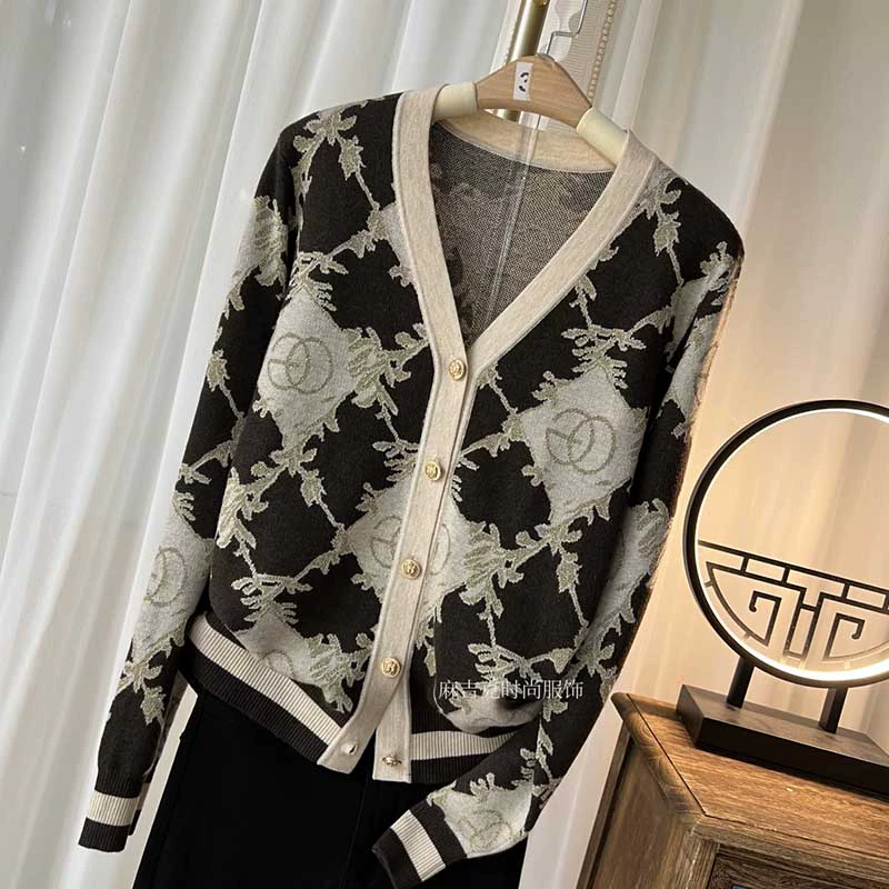 Xiaoxiang Feng European fashion versatile print knitted cardigan