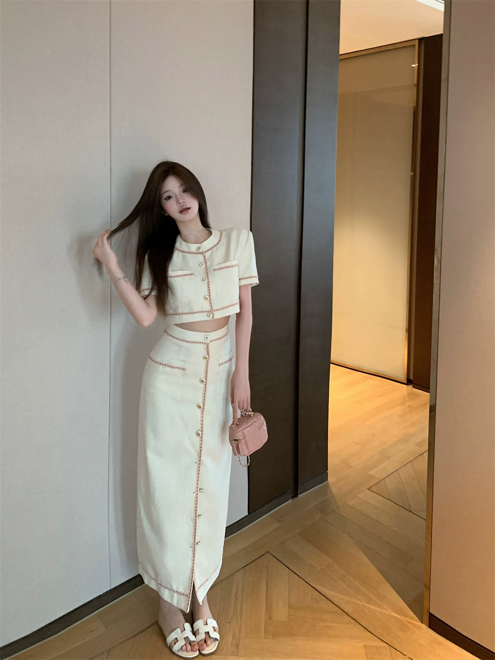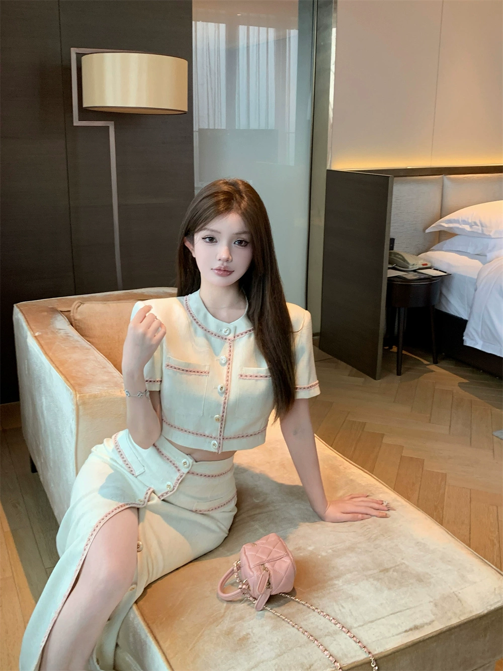 Xiaoxiangfeng high-waisted hip-hugging two-piece short-sleeved set