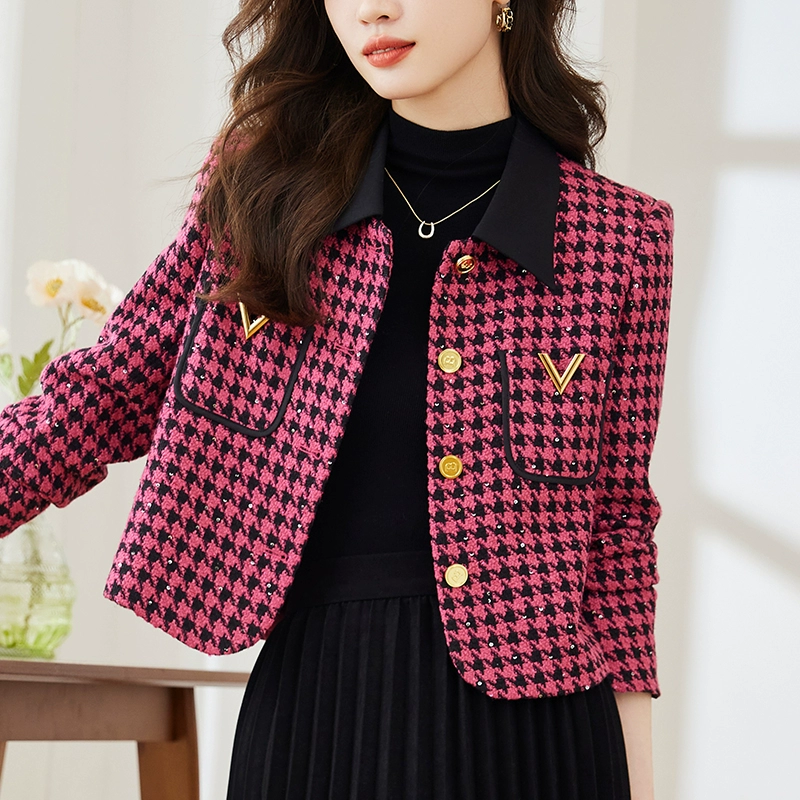 | nameOriginal | Xiaoxiangfeng houndstooth spring, autumn and winter casual short coat |