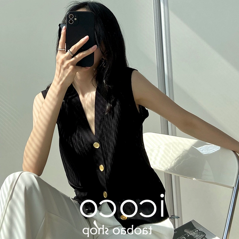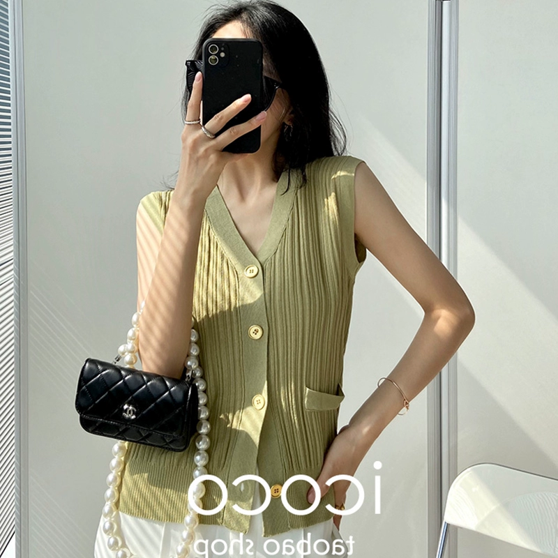 Xiaoxiangfeng ice silk retro v-neck top knitted cardigan