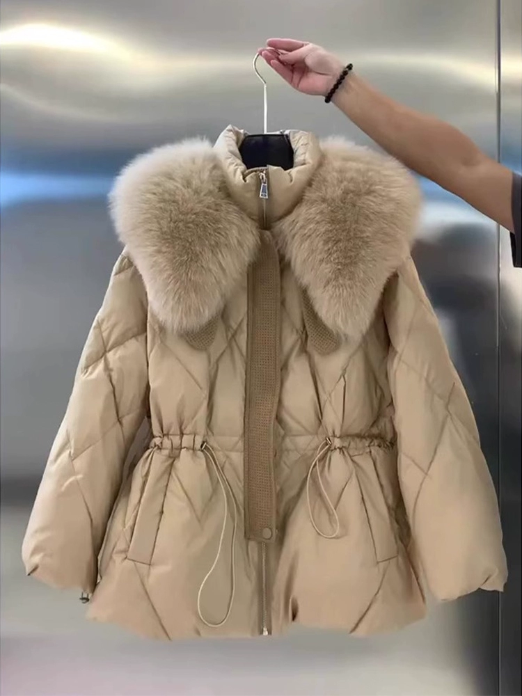 | nameOriginal | Xiaoxiangfeng khaki short down jacket with large fur collar |