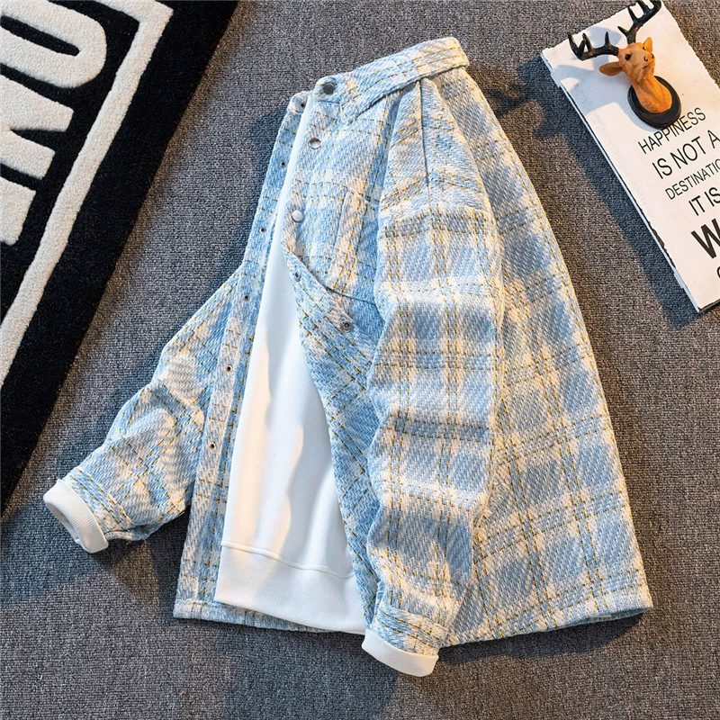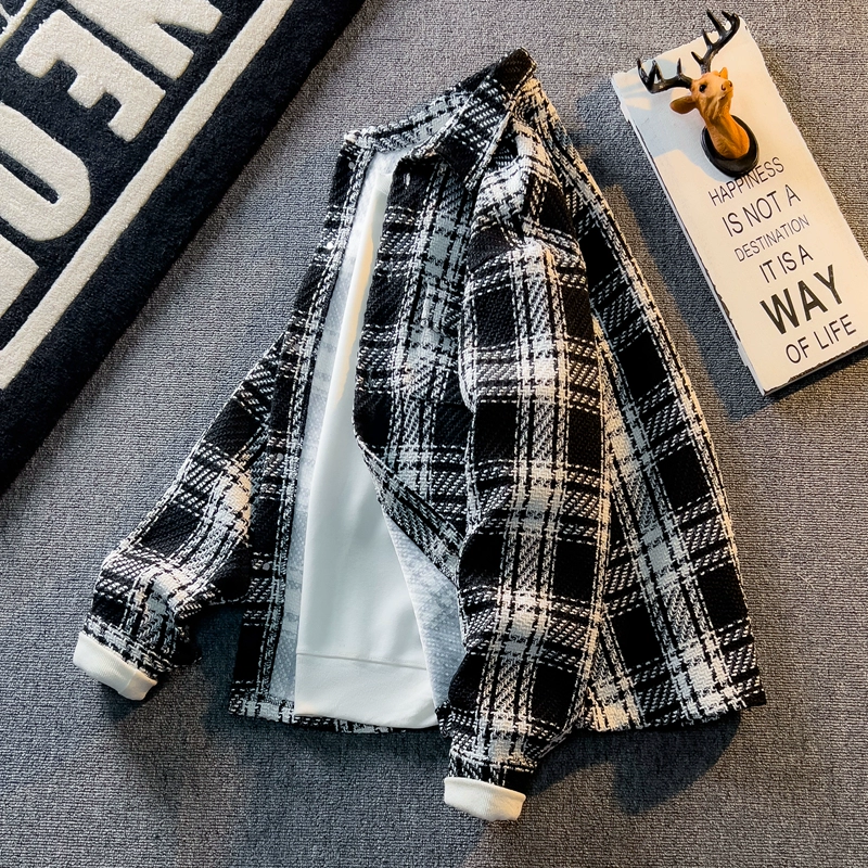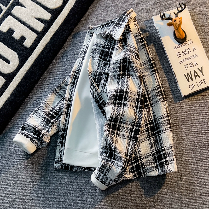 Xiaoxiangfeng loose spring and autumn plaid woolen jacket