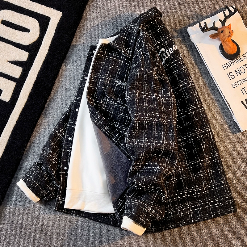 Little incense breeze loose spring and autumn model grid woolen jacket