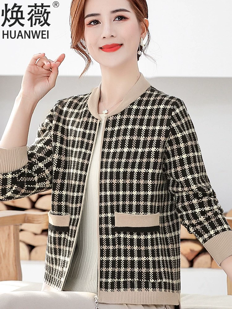 Xiaoxiangfeng Mom Spring and Autumn Short Jacket Middle-aged Women’s Spring Cardigan Jacket Middle-aged and Old Fashioned Thin Top