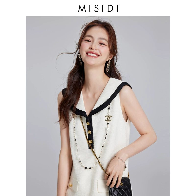 | nameOriginal | Xiaoxiangfeng navy collar sleeveless texture dress |