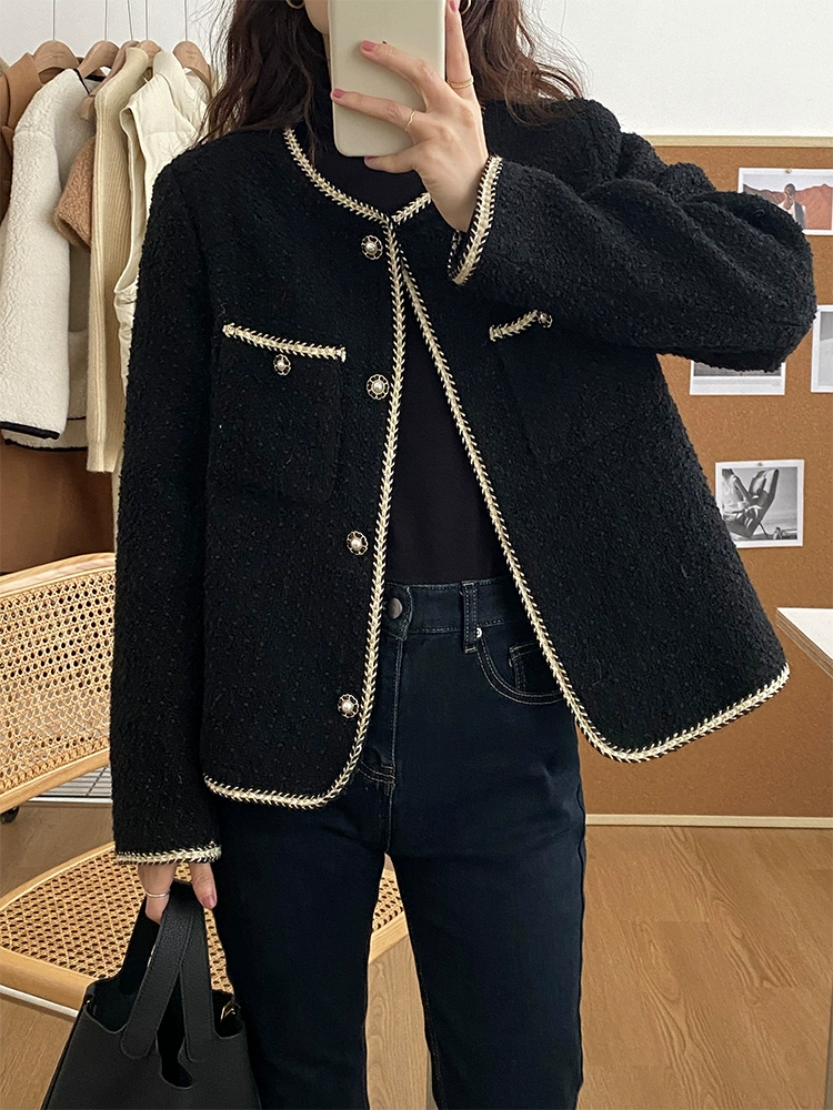 | nameOriginal | Xiaoxiangfeng plus size fat mm mid-length right shoulder jacket |