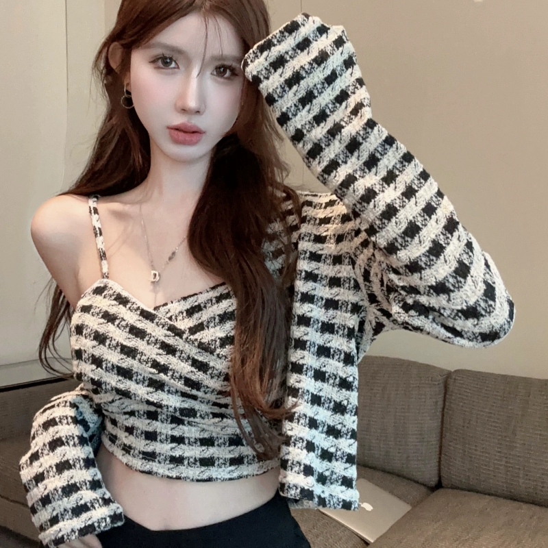 Xiaoxiangfeng pure desire top plaid camisole tube top