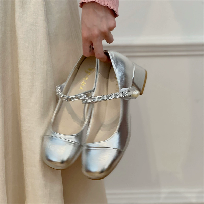 | nameOriginal | Xiaoxiangfeng retro silver thick heel shoes |