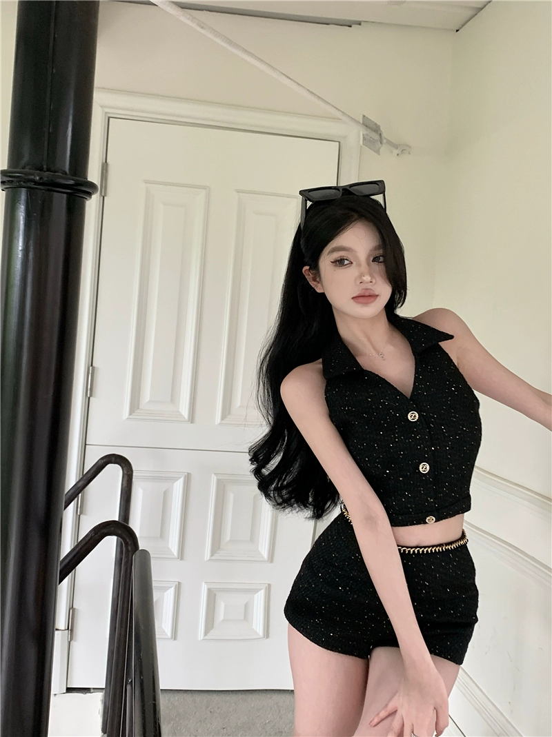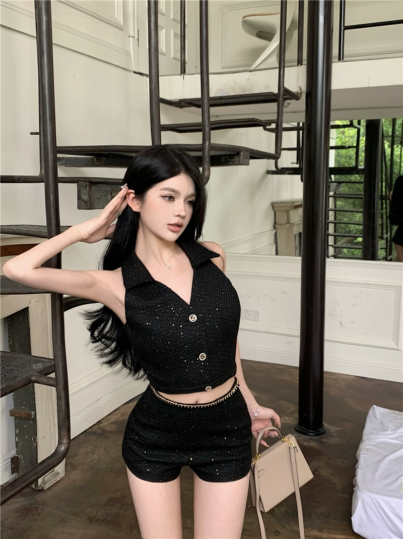 | nameOriginal | Xiaoxiangfeng shiny v-neck women's summer suit halter neck |