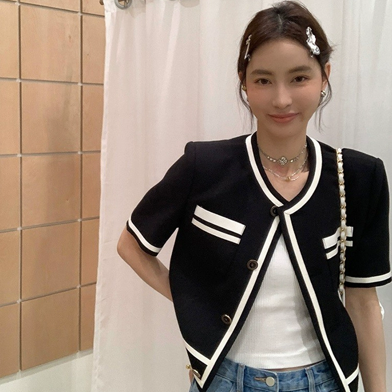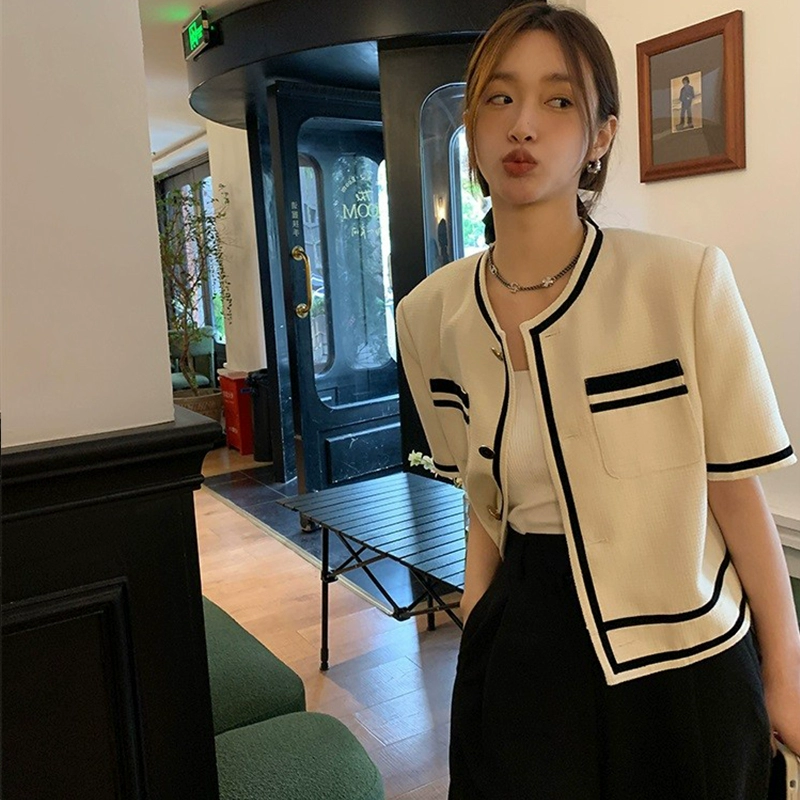 | nameOriginal | Xiaoxiangfeng short-sleeved jacket for women in summer, thin, contrasting color, elegant, high-end, cardigan, suit, short top |