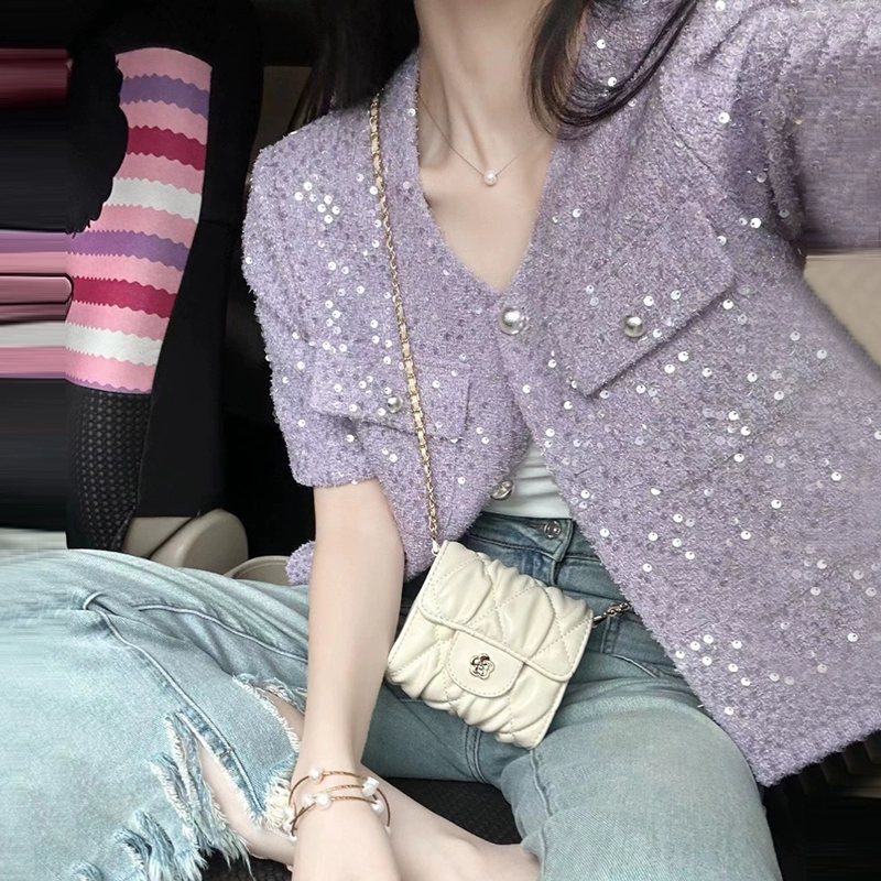 Xiaoxiangfeng sparkling cardigan jacket socialite short sleeves