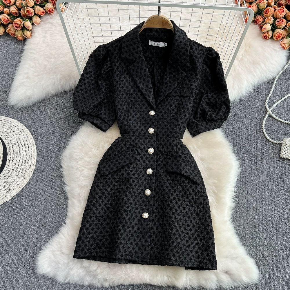 Xiaoxiangfeng Summer Retro Bubble Dress Short Sleeve