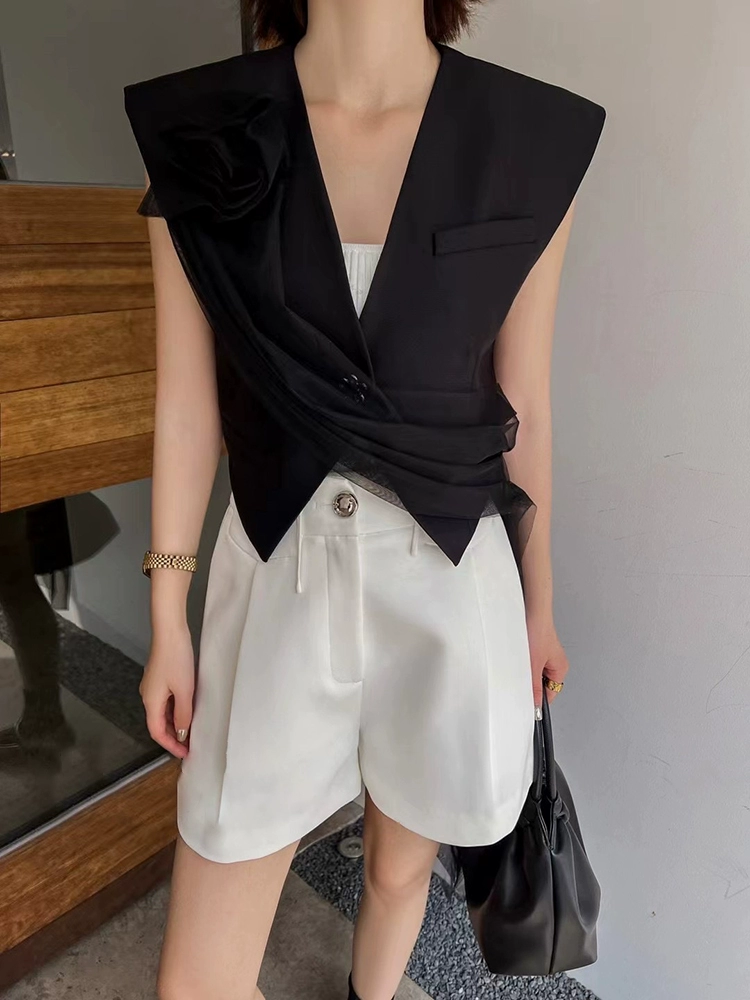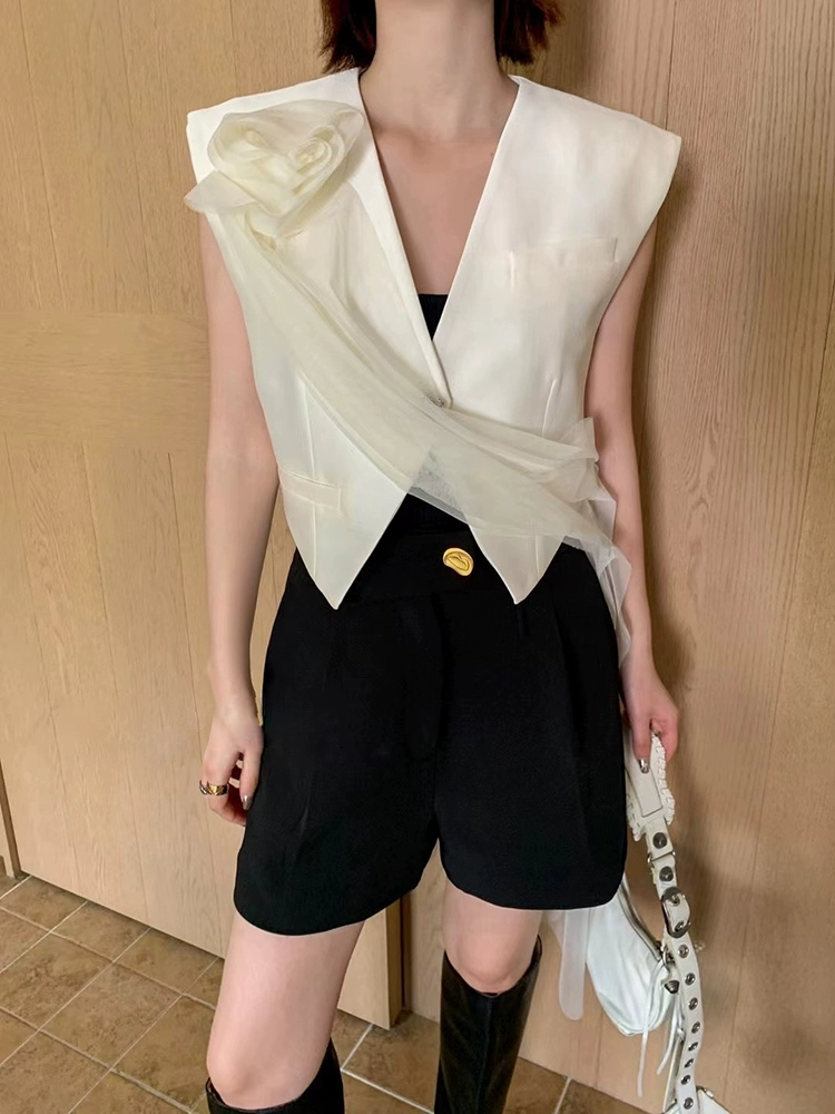 | nameOriginal | Xiaoxiangfeng summer short shoulder V-neck top mesh |