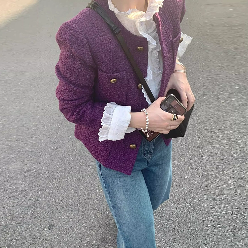Xiaoxiangfeng tweed short shoulder casual jacket
