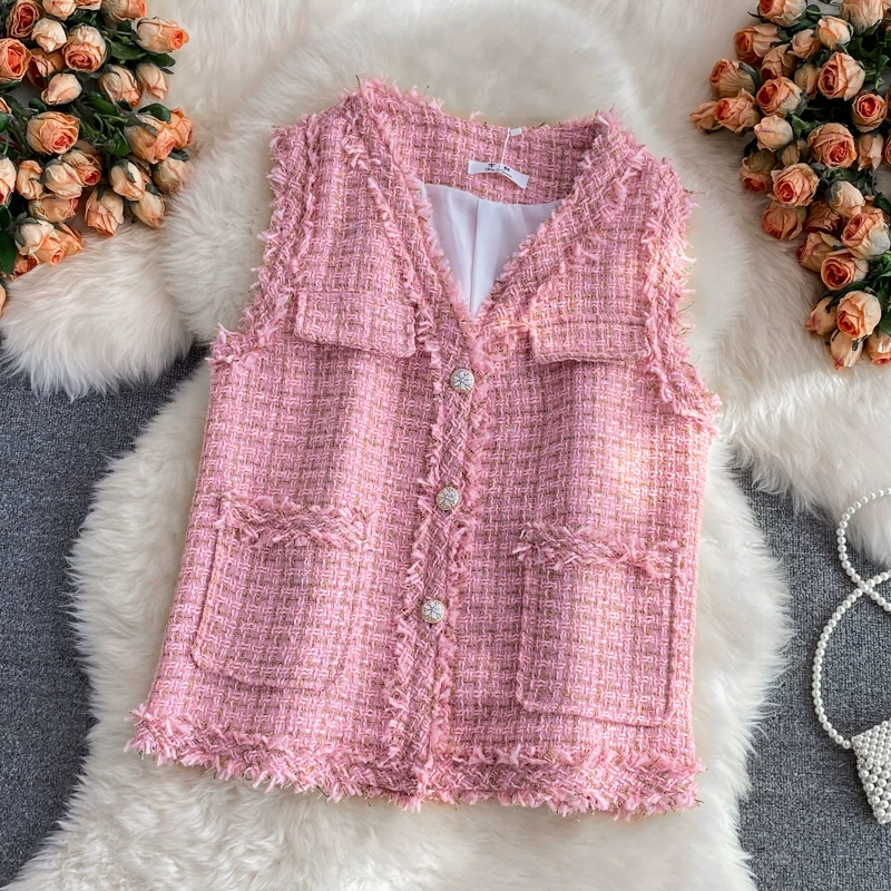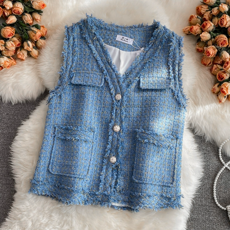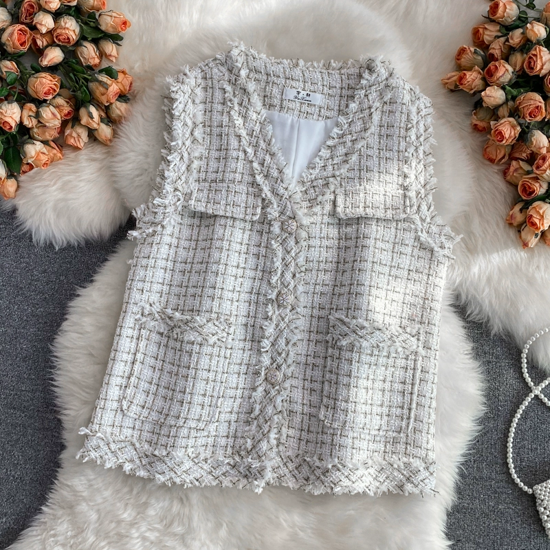 | nameOriginal | Xiaoxiangfeng V-neck single-breasted tweed raw edge vest |