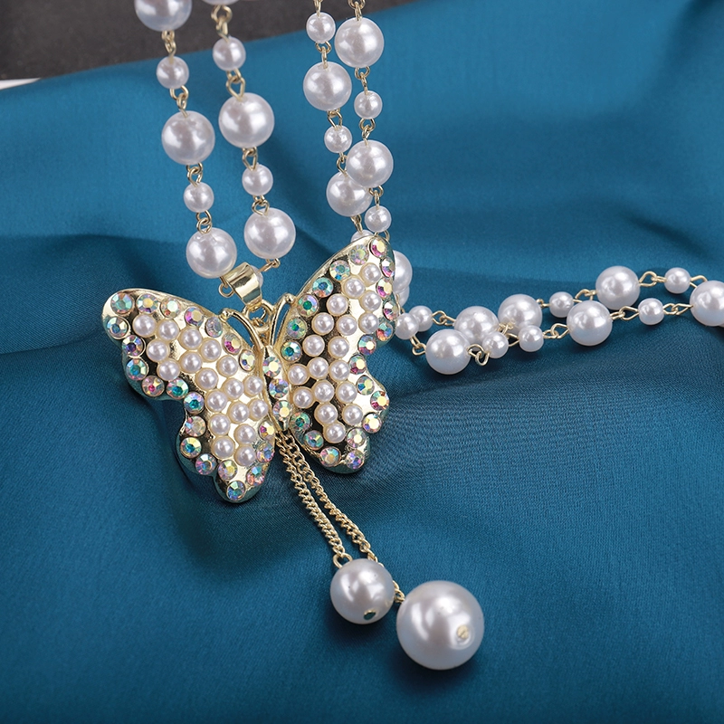 Xiaoxiangfeng Women's Sports Round Imitation Pearl Sweater Chain