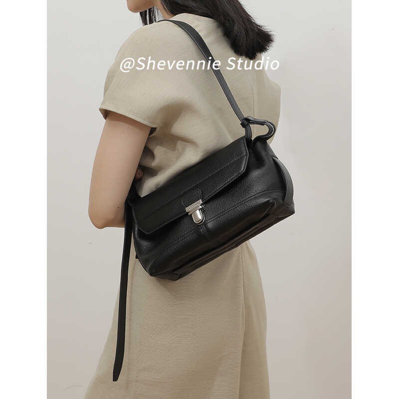 Xiaozhong Design Cowhide Shoulder Metal Buckle Bag Underarm Bag Crossbody Small Square Bag Women's Bag