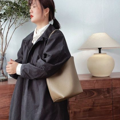 | nameOriginal | Xiaozhong Genuine Leather 2024 New Bucket Bag High-grade One-shoulder Handbag Litchi Pattern Cowhide Large Capacity Tote Bag for Women |