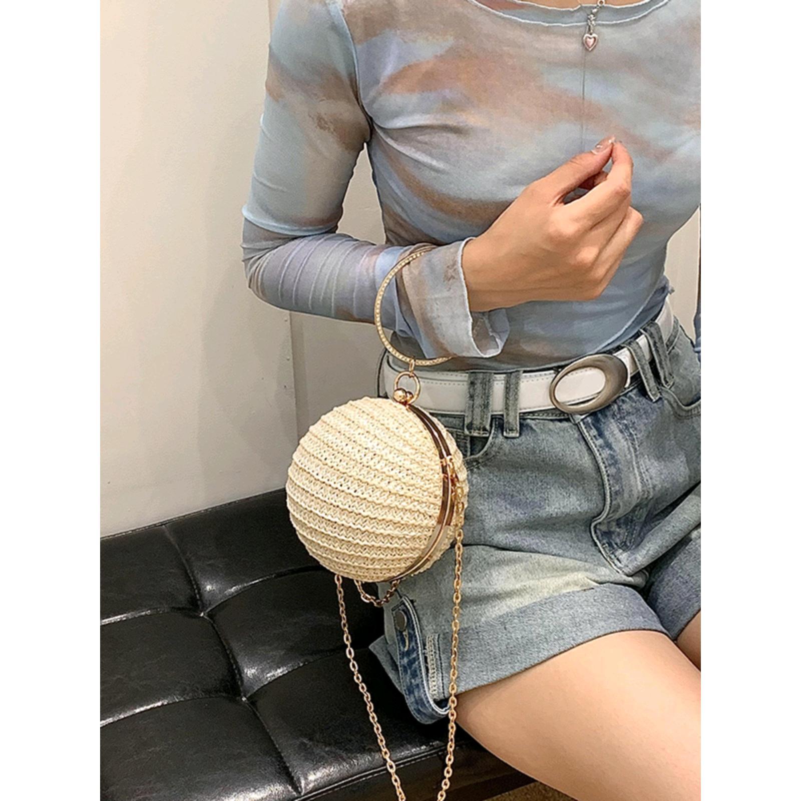 Xiaozhong Unique Design Sense Round Ball Bag Portable Small Round Bag Mini Red Bag Change Headphone Bag Woven Crossbody Bag
