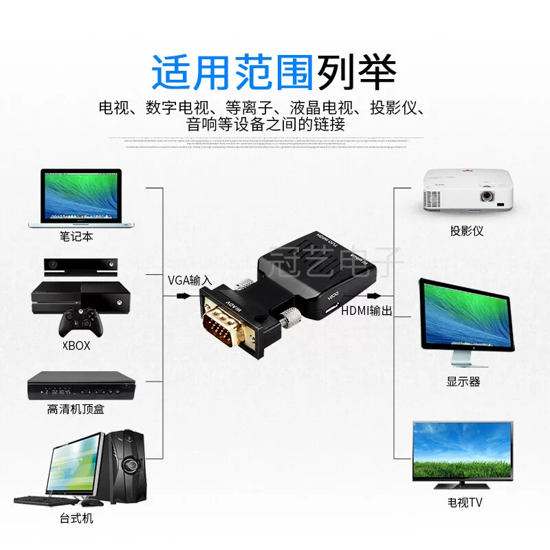 | nameOriginal | Xidi VGA to HDMI converter with 3.5mm audio synchronization set-top box computer TV projector adapter |