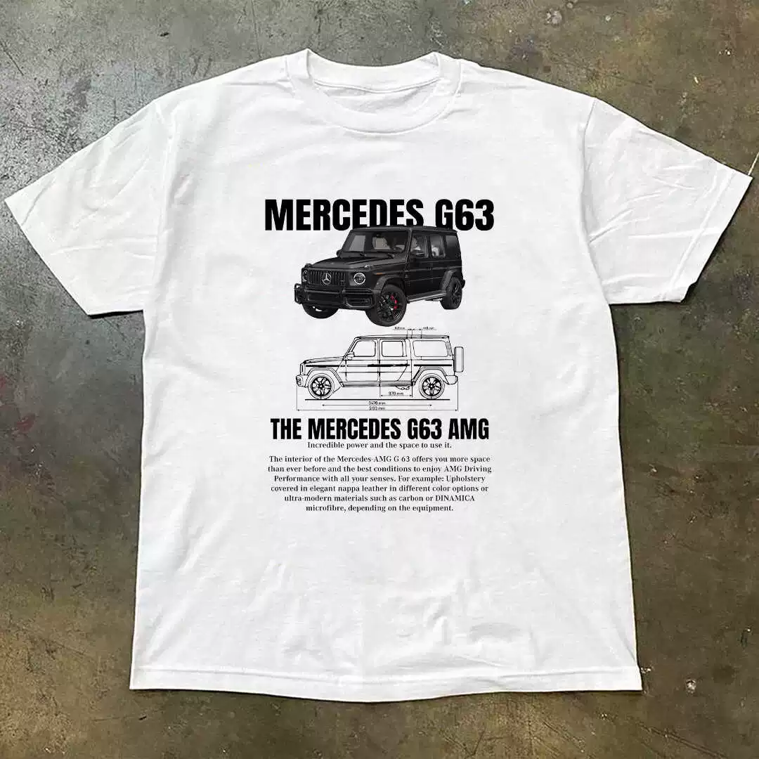 Xihai Plank Road T-shirt Short-sleeved MERCEDES G63 car printed white impermeable loose half-sleeved top