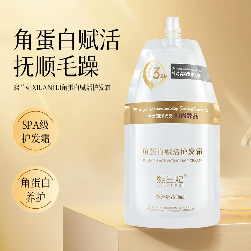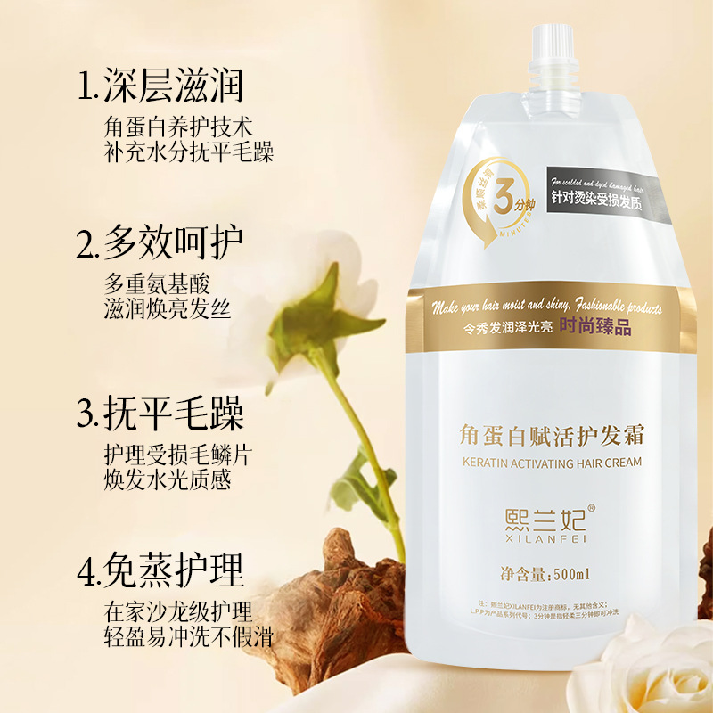 Xilanfei keratin activated hair cream perm dyeing soft hair conditioner repair dry frizz free evaporation film wholesale