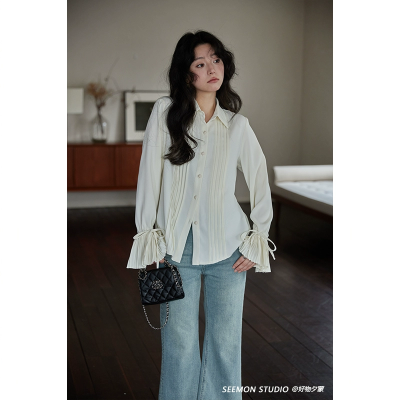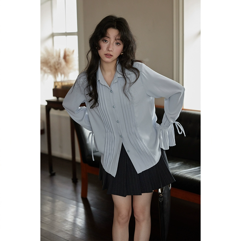 | nameOriginal | Ximeng thin blue niche trumpet sleeve jacket shirt |