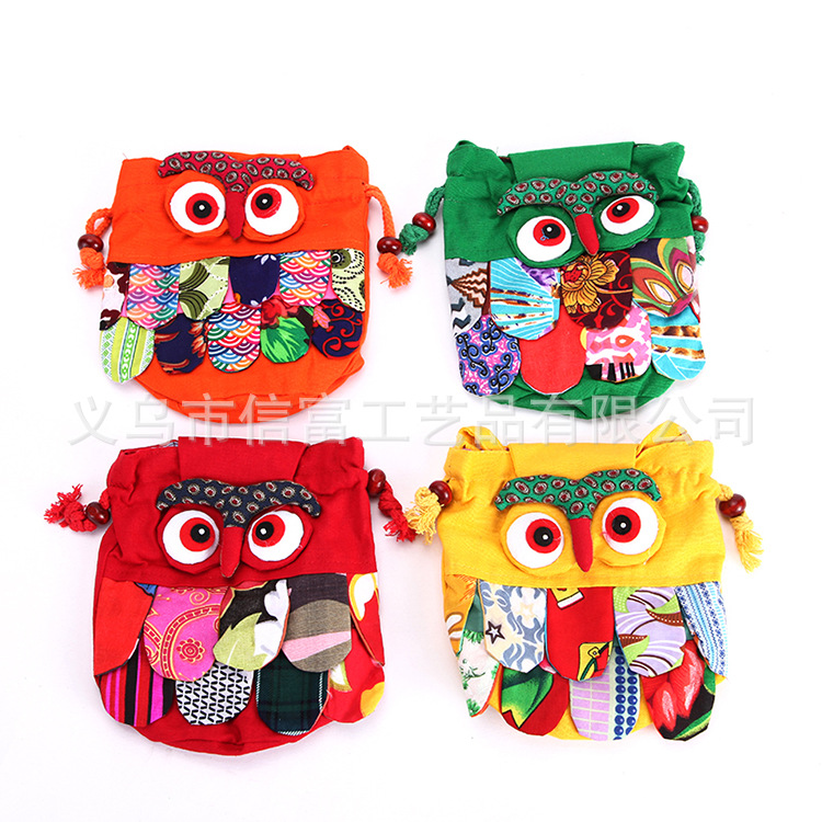 | nameOriginal | Xinfu craft factory direct feather owl fabric backpack barrel bag ethnic handmade backpack |