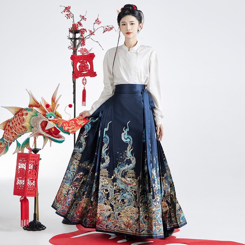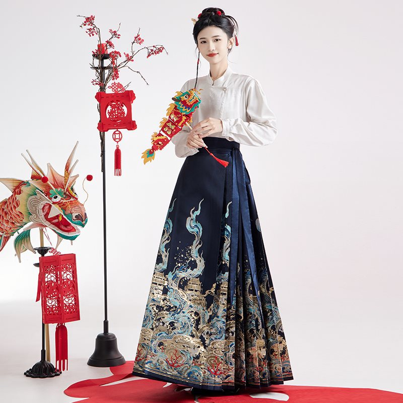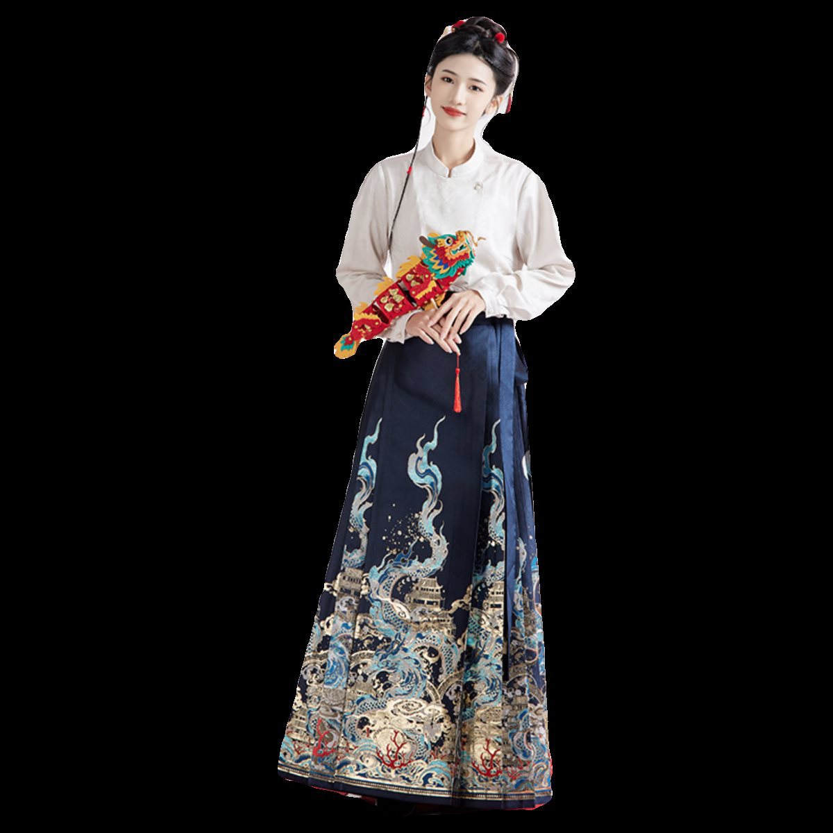 | nameOriginal | Xinghe Han Song [Dragon Bleu] Horse Face Skirt Imitation Makeup Flower Weaving Gold Han Clothing suit Guofeng 2024 Dragon Year Skirt |