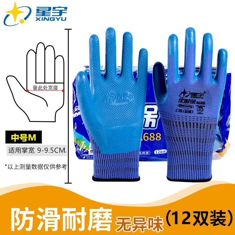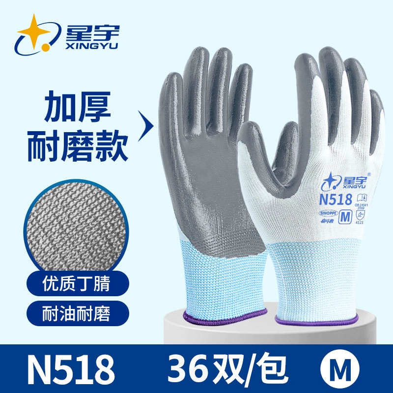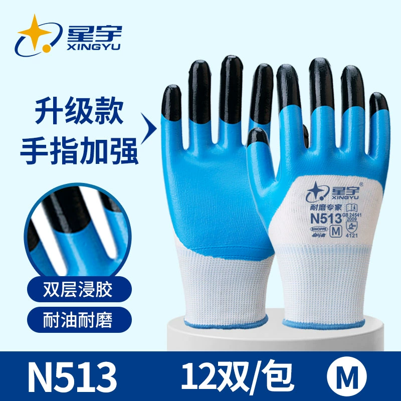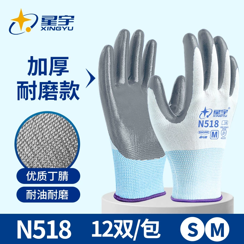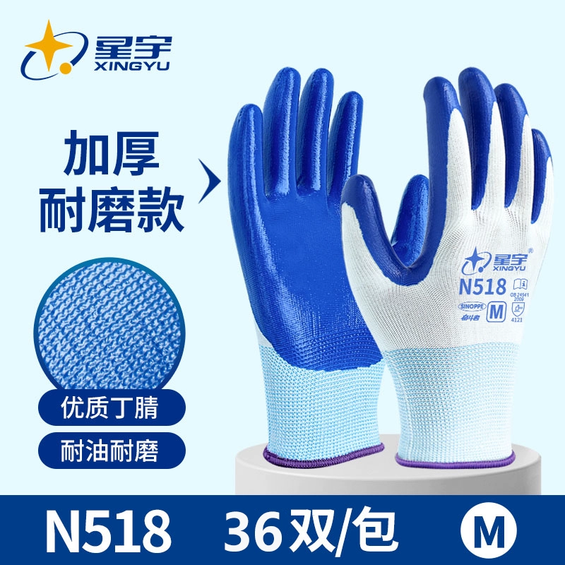 Xingyu genuine gloves 518 labor protection wear-resistant king work Ding Qing construction site special work nitrile deodorant full rubber 688