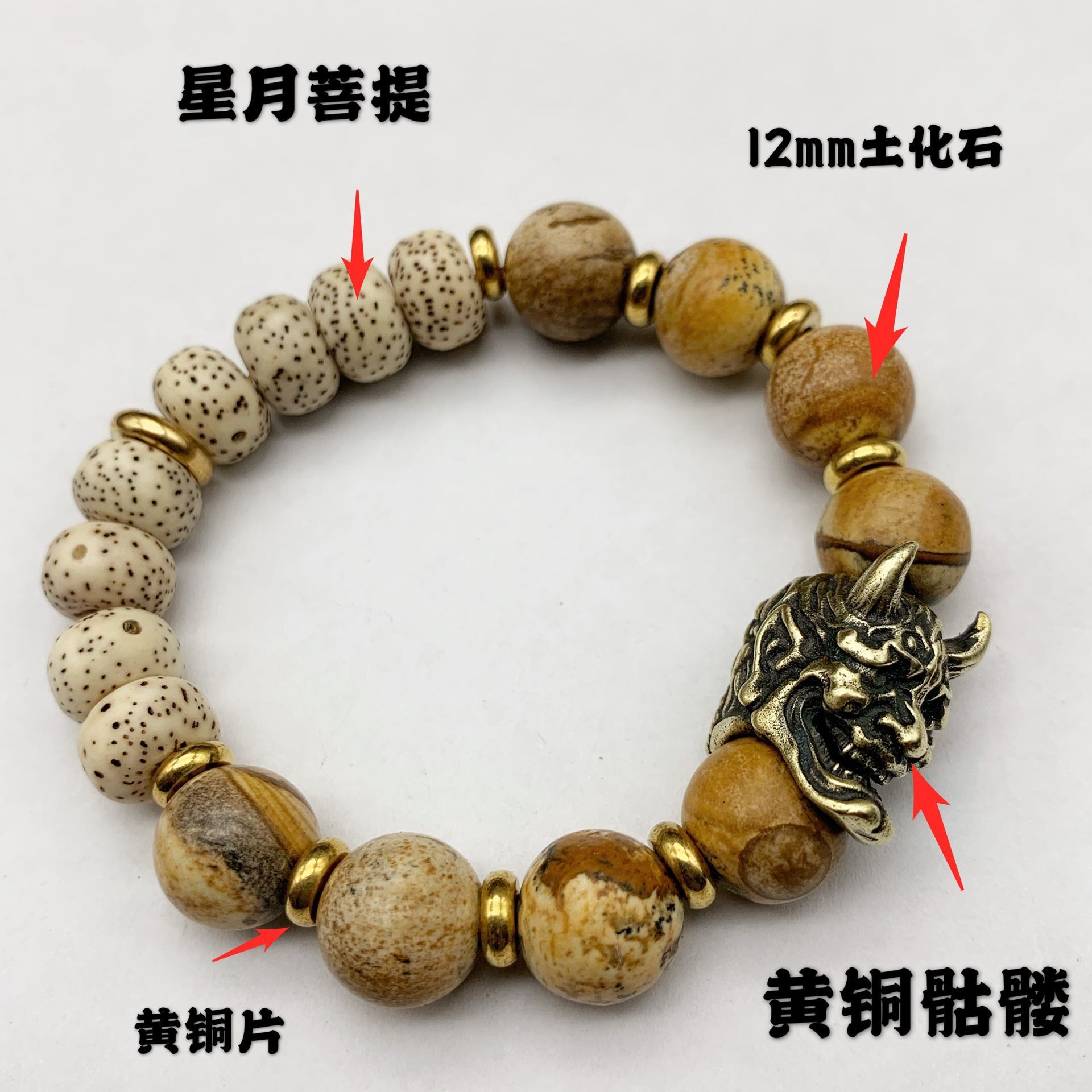 | nameOriginal | Xingyue Bodhi brass skull bracelet Earth fossil pure brass accessories factory wholesale original alternative single ring bracelet |