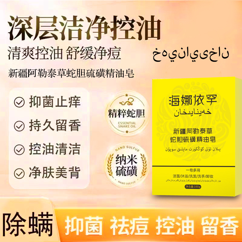 | nameOriginal | Xinjiang Altay Snake Gall Sulfur Essence Oil Soap Mite Removal and Exfoliating Hand-made Soap Antipruritic Clean Oil Control Mite Soap Liquid |