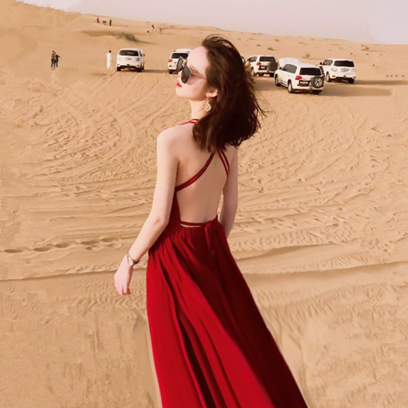 | nameOriginal | Xinjiang desert resort style red V-neck backless long dress |