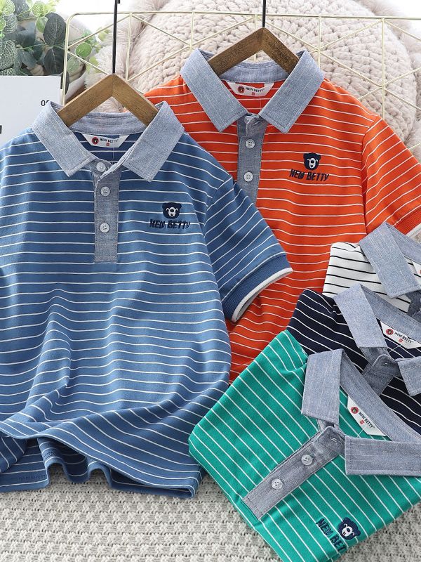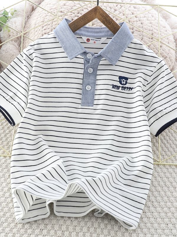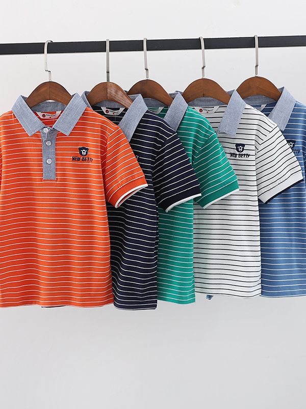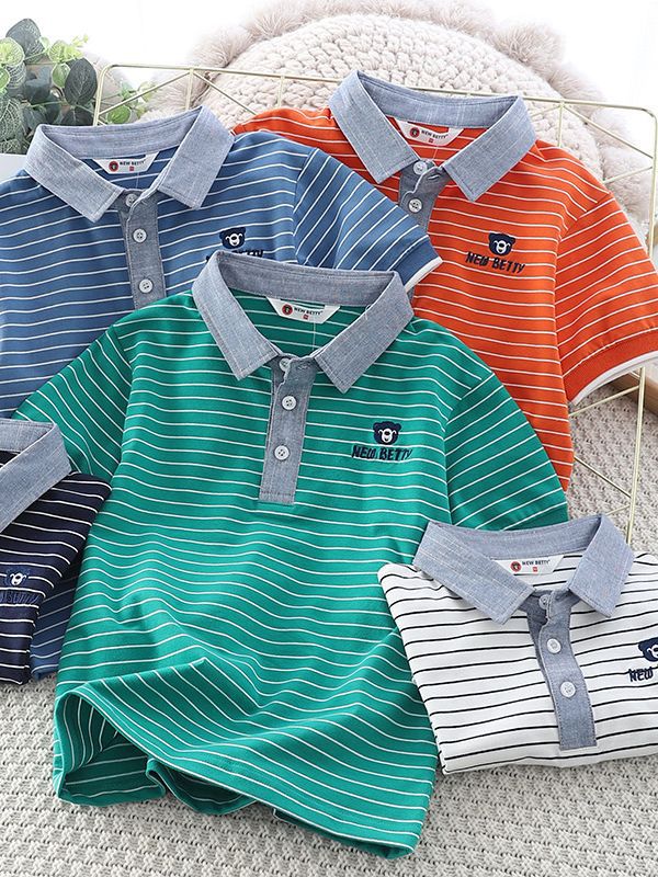 | nameOriginal | Xiong Zai's children's Denim collar polo shirt medium and big children's casual horizontal striped short-sleeved T-shirt baby boys' cotton bottoming shirt |