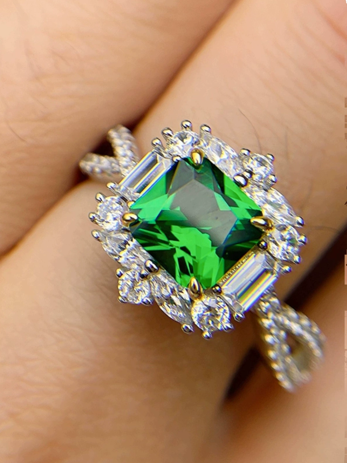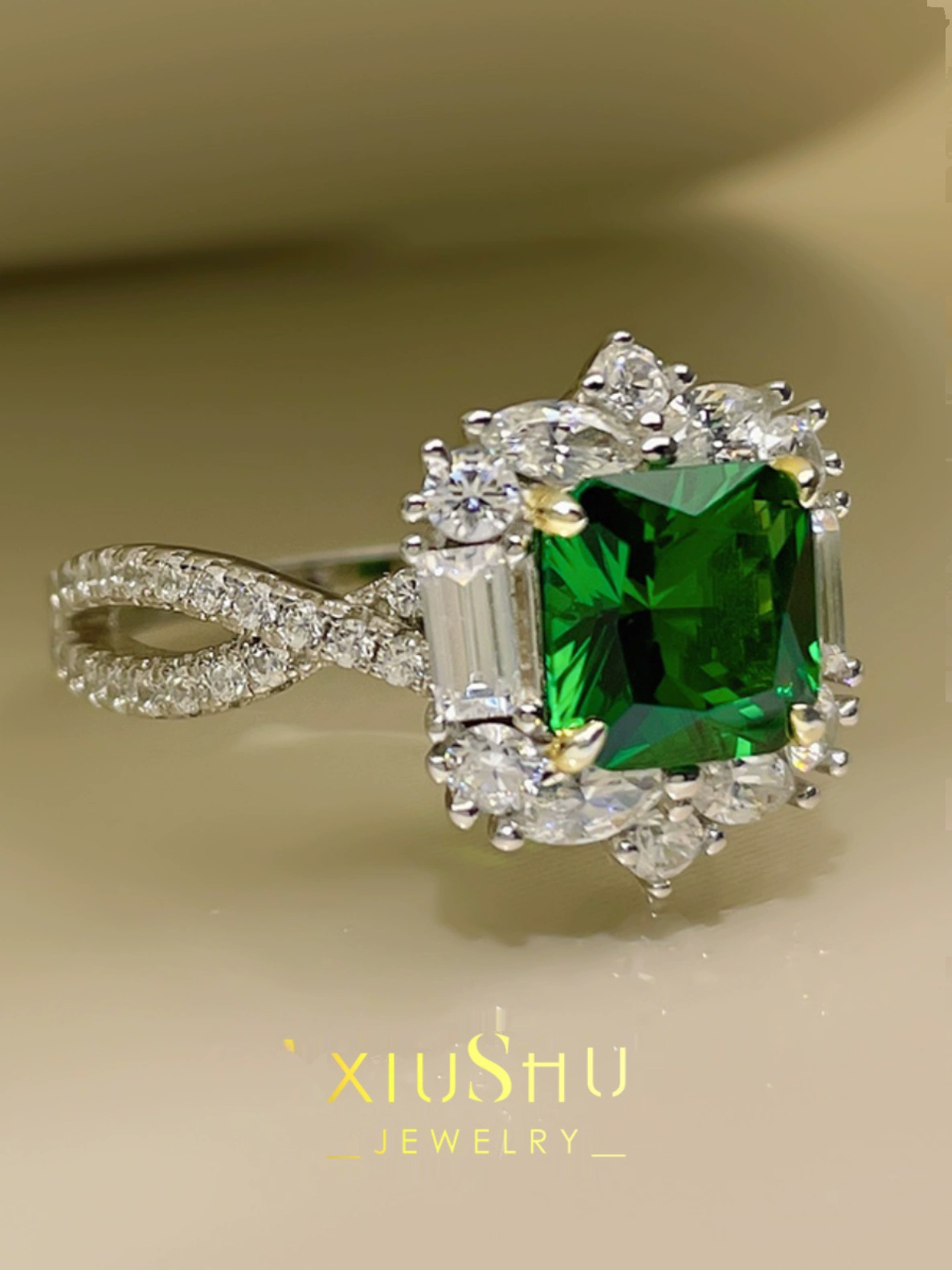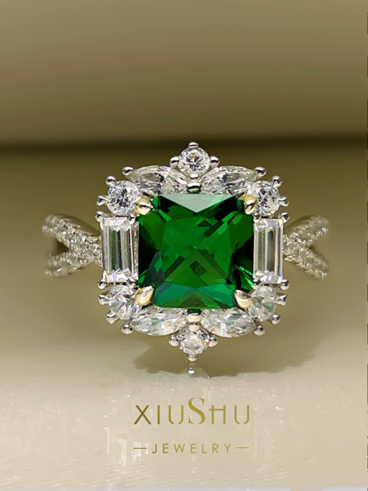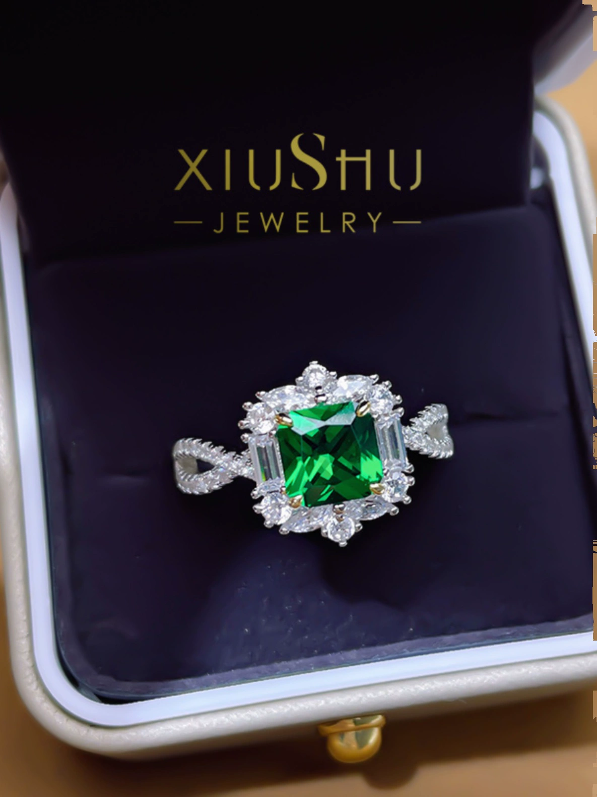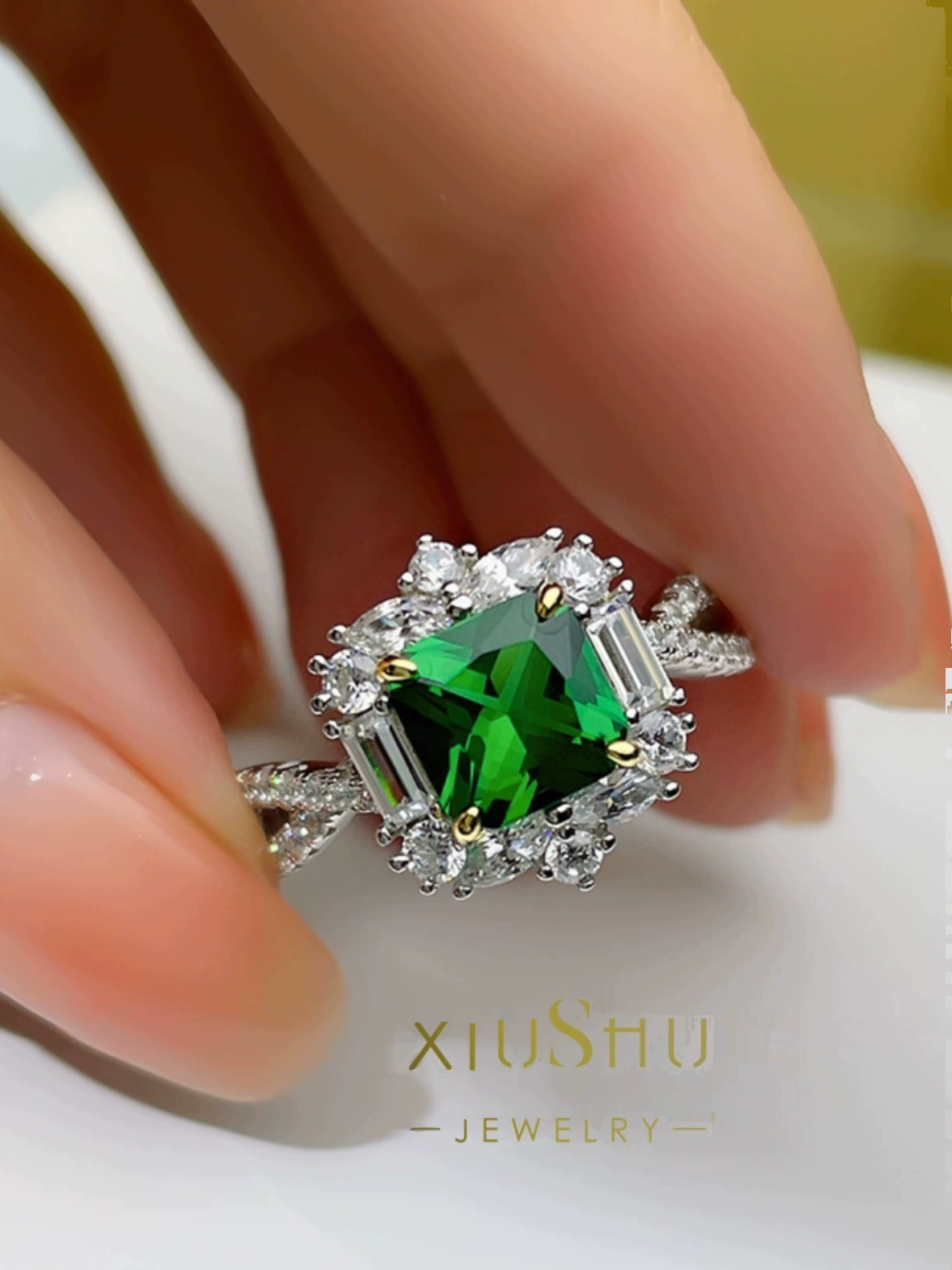 | nameOriginal | XIUSHU high-definition artificial emerald ring for women, small gemstone, daily sterling silver, non-fading, brilliant technology diamond |