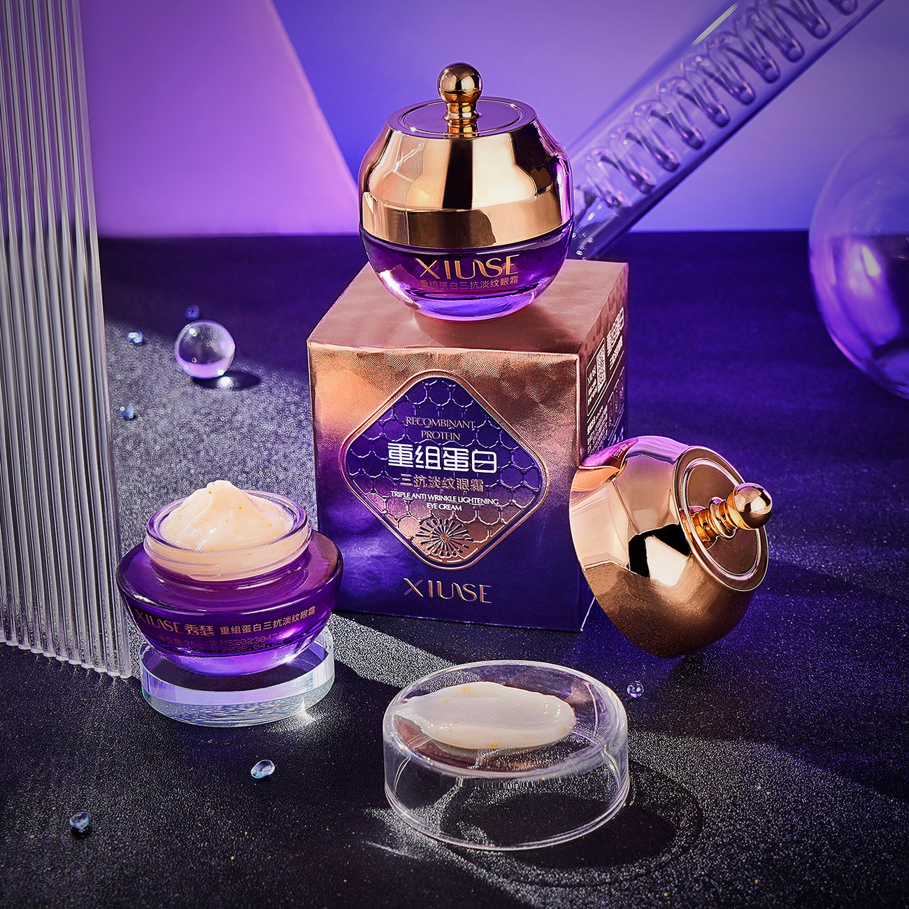 Xiuther Recombinant Protein Three Anti-Eye Cream Desalination Fine-lines Hydrating and Moisturizing Desalination Dark Circles Brightening and Tightening Eye Cream