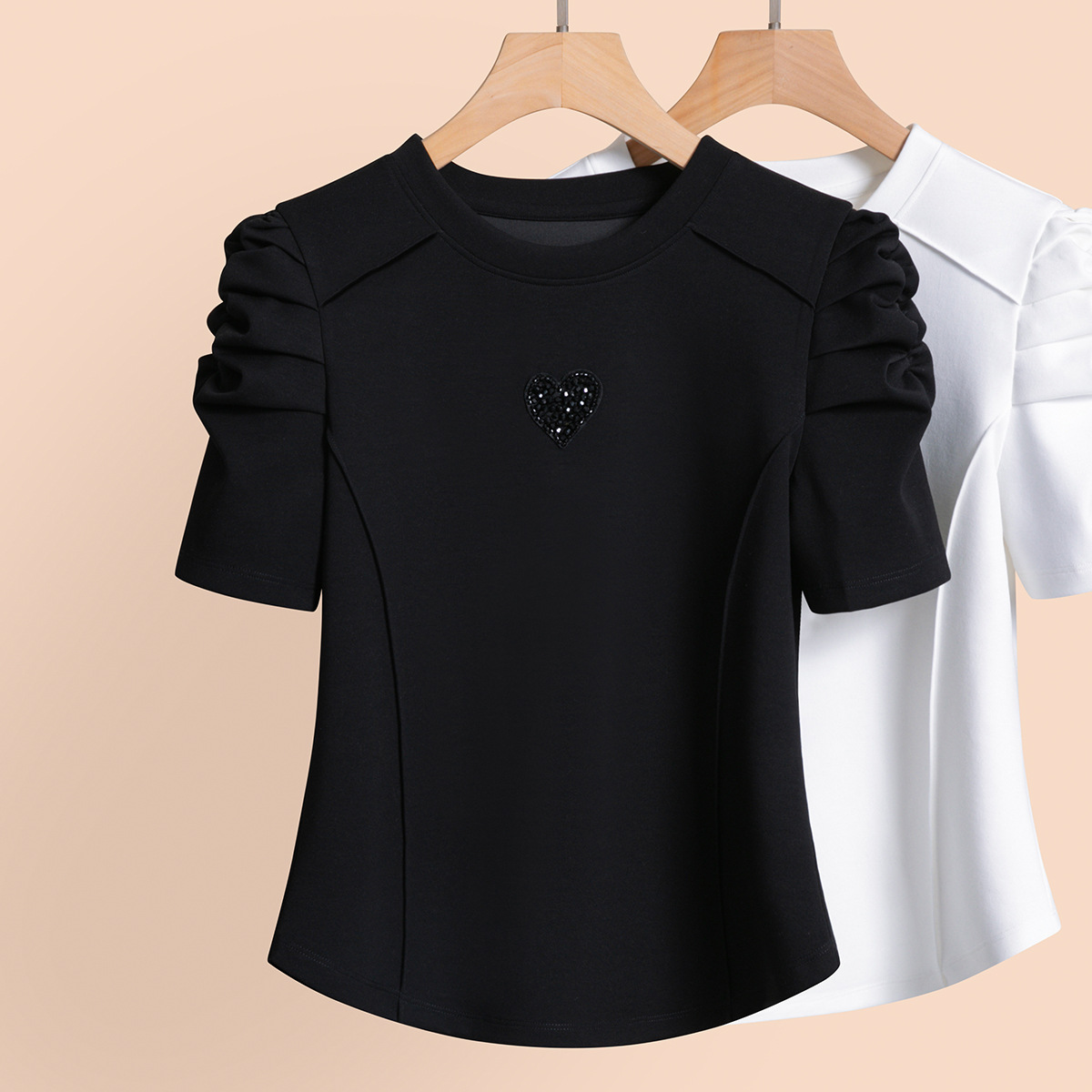| nameOriginal | Xiuxian Soossn Women's Clothing Design Sense Puff Sleeve T-shirt Women's 2024 Summer New Short Sleeve Love Top Half Sleeve |