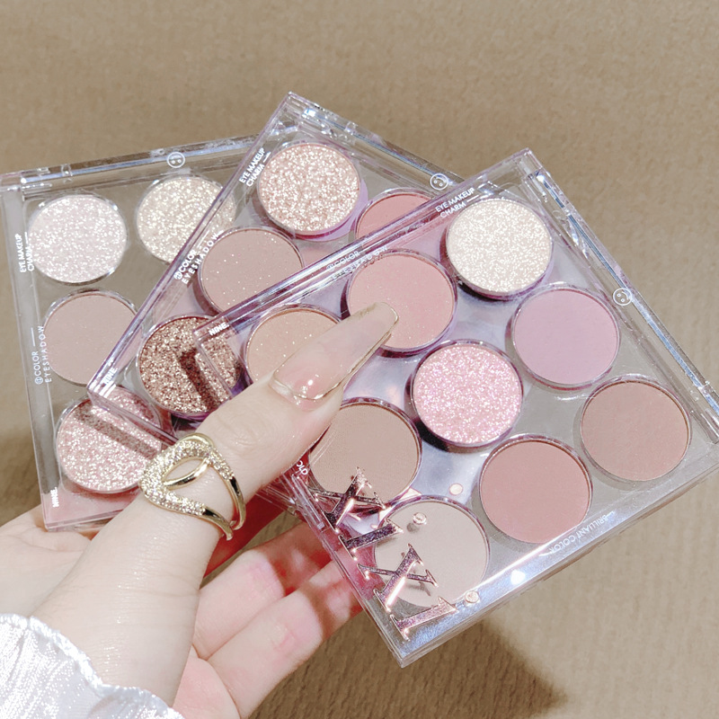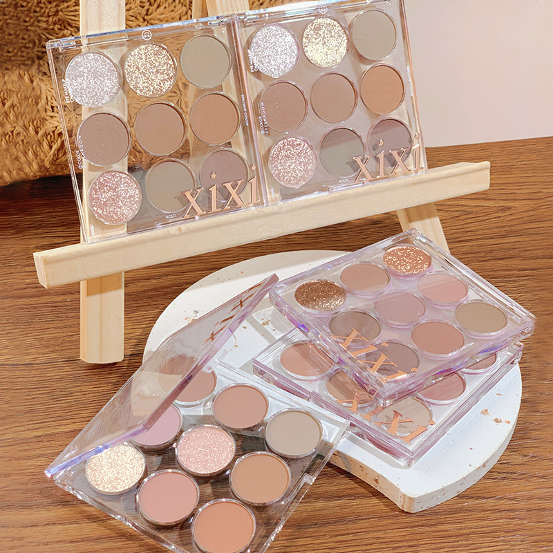 xixi transparent embossed nine-color eyeshadow plate milk tea earth color pearlescent matte glitter powder student eyeshadow plate d-447