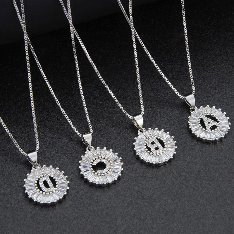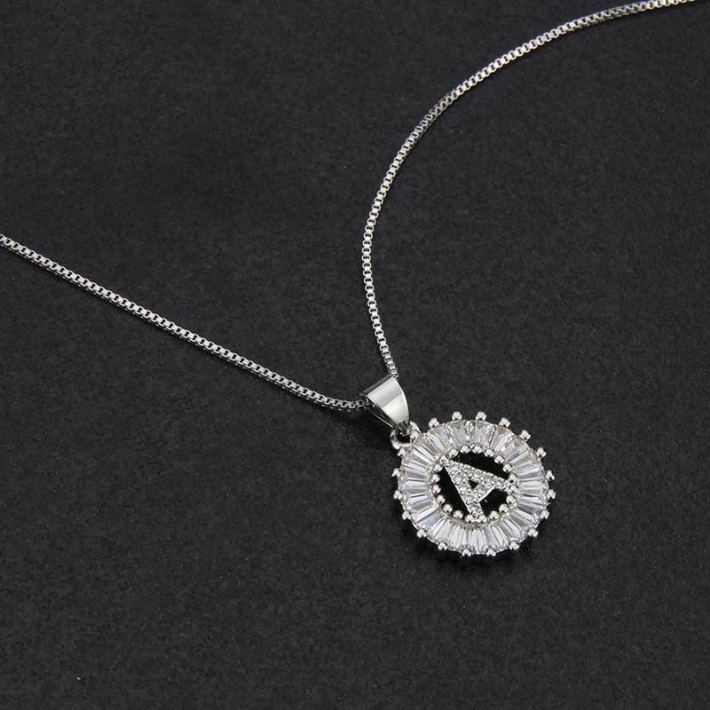 Xiyin Europe and the United States cross-border silver trumpet 26 English letter necklace spot direct supply zircon letter copper pendant