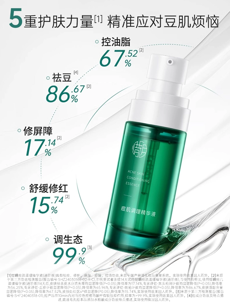 | nameOriginal | Xiyue salicylic acid small green bottle VC essence oil control acne soothing repair moisturizing closed acne fade seal official |