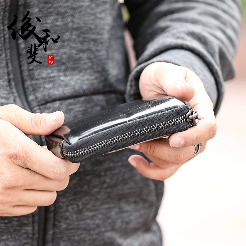 xmyb European and American cowhide handmade simple zipper coin purse Genuine leather short wallet driver’s license bag card bag small handbag